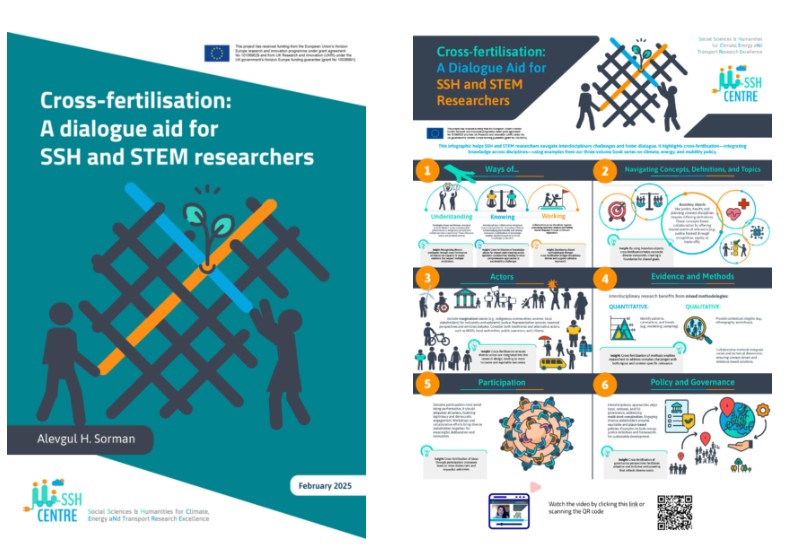 This infographic helps SSH and STEM researchers navigate interdisciplinary challenges and foster dialogue. It highlights cross-fertilisation—integrating knowledge across disciplines—using examples from our three-volume book series on climate, energy, and mobility policy.